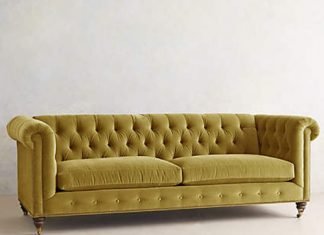 Anthropologie Velvet Lyre Chesterfield Sofa